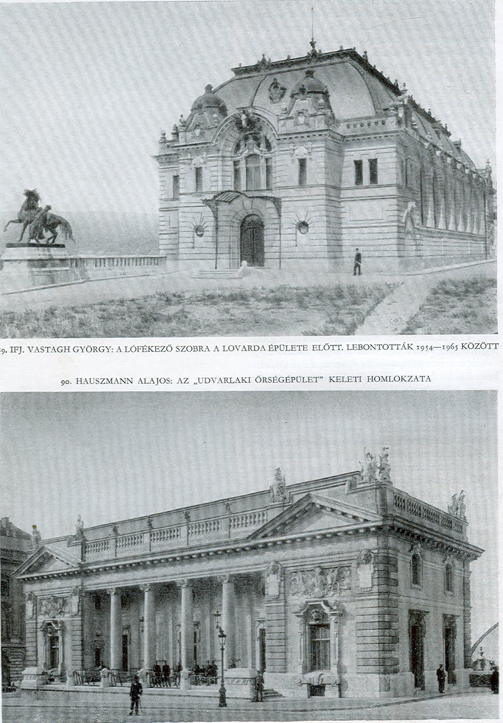 A Szent György tér nyugati oldala a II. világháború előtt. A Képen a királyi istállóépület látható, mögötte az alacsony épület a lovarda, a háttérben pedig az oroszlános kapu nyílik. [a kép forrása: skyscrapercity]